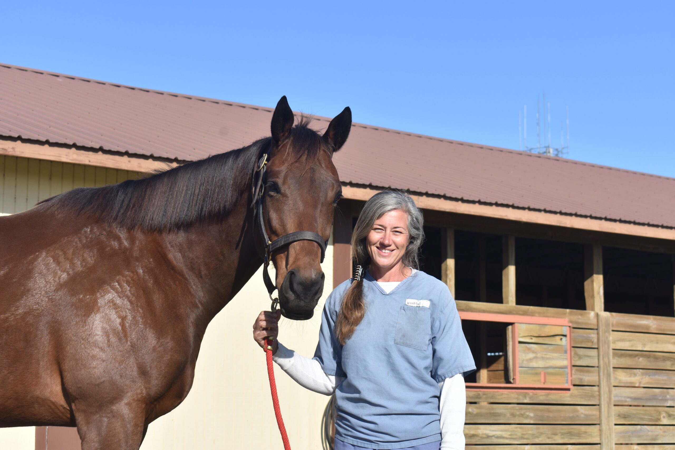 For the women in our program, Celestial is both teacher and healer. Through daily care, grooming, handling, groundwork, leading, and basic horsemanship, participants learn patience, communication, and trust. Celestial meets them where they are, offering calm feedback and the kind of quiet confidence only a seasoned Thoroughbred can provide. As with all TRF Second Chances horses, the transformation flows in both directions; while Celestial gains the comfort and consistency of dignified lifetime care, the women gain new skills, a sense of responsibility, and a living example of resilience.